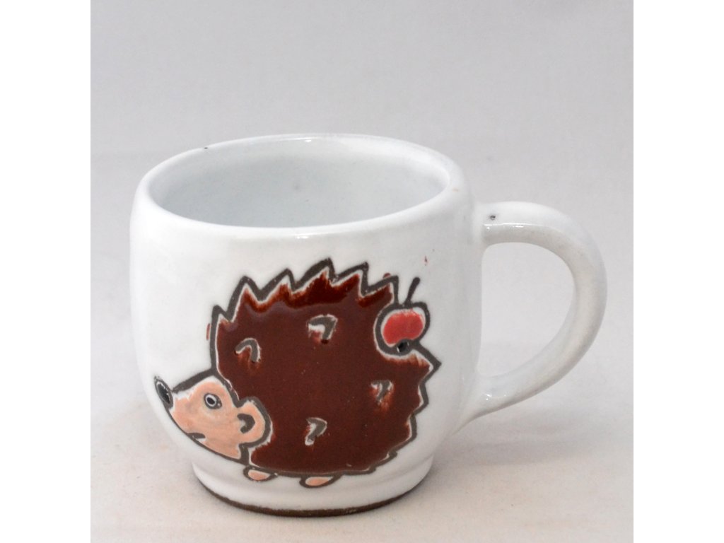 Každý náš hrnek je trošičku originál, protože se jedná o ruční výrobek. Než si do něj nalejete svou kávu, vezme jej do rukou mnoho lidí. Nejprve jej nalijeme do formy a necháme ho zaschnout tak, aby jeho stěny měly požadovanou šířku. Pak jej opatrně vyjmeme a obrousíme nedokonalosti. Po uschnutí čeká hrnek první výpal v keramické peci a poté přijde řada na glazuru a dekor. Obrázky na hrnky si buď předmalováváme voskem (to jsou ty obrázky s viditelnou konturou) nebo je malujeme barvítky přímo na glazuru (drobné vzorky kytiček nebo puntíků). A teprve potom čeká hrnek ostrý výpal v keramické peci.