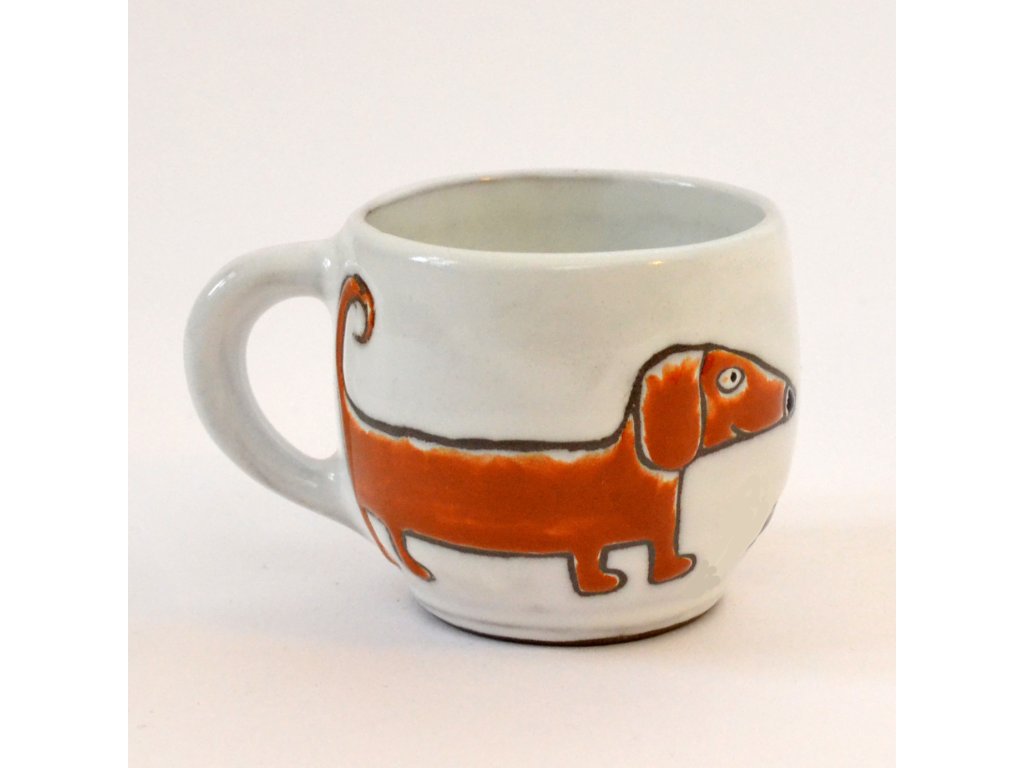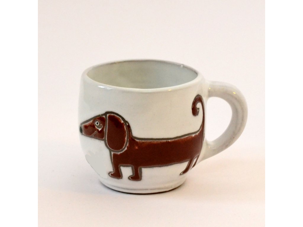 Každý náš hrnek je trošičku originál, protože se jedná o ruční výrobek. Než si do něj nalejete svou kávu, vezme jej do rukou mnoho lidí. Nejprve jej nalijeme do formy a necháme ho zaschnout tak, aby jeho stěny měly požadovanou šířku. Pak jej opatrně vyjmeme a obrousíme nedokonalosti. Po uschnutí čeká hrnek první výpal v keramické peci a poté přijde řada na glazuru a dekor. Obrázky na hrnky si buď předmalováváme voskem (to jsou ty obrázky s viditelnou konturou) nebo je malujeme barvítky přímo na glazuru (drobné vzorky kytiček nebo puntíků). A teprve potom čeká hrnek ostrý výpal v keramické peci.