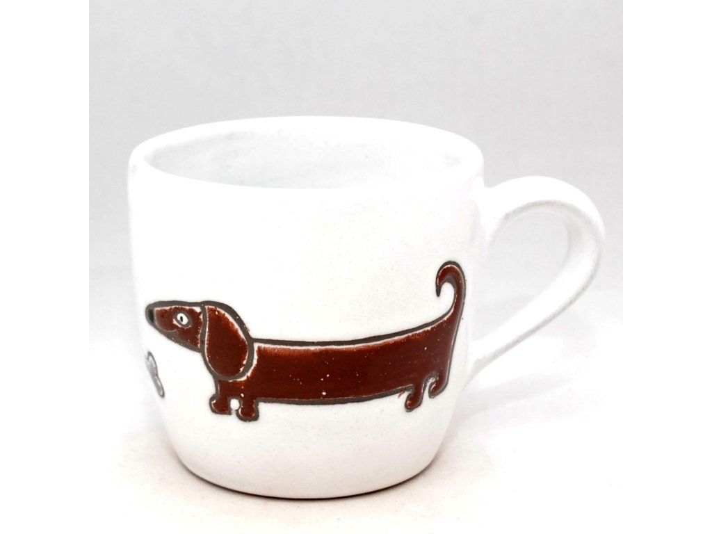 Každý náš hrnek je trošičku originál, protože se jedná o ruční výrobek. Než si do něj nalejete svou kávu nebo čaj, vezme jej do rukou mnoho lidí. Nejprve jej nalijeme do formy a necháme ho zaschnout tak, aby jeho stěny měly požadovanou šířku. Pak jej opatrně vyjmeme a obrousíme nedokonalosti. Po uschnutí čeká hrnek první výpal v keramické peci a poté přijde řada na glazuru a dekor. Obrázky na hrnky si buď předmalováváme voskem (to jsou ty obrázky s viditelnou konturou) nebo je malujeme barvítky přímo na glazuru (drobné vzorky kytiček nebo puntíků). A teprve potom čeká hrnek ostrý výpal v keramické peci.