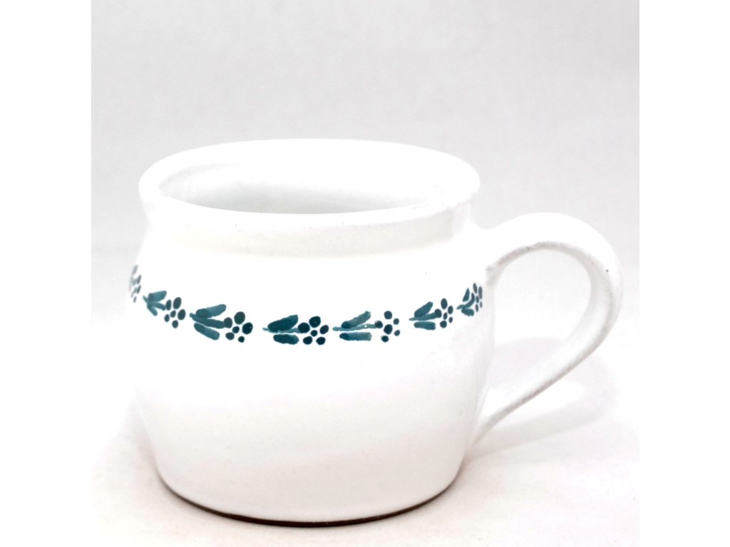 Každý náš hrnek je trošičku originál, protože se jedná o ruční výrobek. Než si do něj nalejete svou kávu nebo čaj, vezme jej do rukou mnoho lidí. Nejprve jej nalijeme do formy a necháme ho zaschnout tak, aby jeho stěny měly požadovanou šířku. Pak jej opatrně vyjmeme a obrousíme nedokonalosti. Po uschnutí čeká hrnek první výpal v keramické peci a poté přijde řada na glazuru a dekor. Obrázky na hrnky si buď předmalováváme voskem (to jsou ty obrázky s viditelnou konturou) nebo je malujeme barvítky přímo na glazuru (drobné vzorky kytiček nebo puntíků). A teprve potom čeká hrnek ostrý výpal v keramické peci.