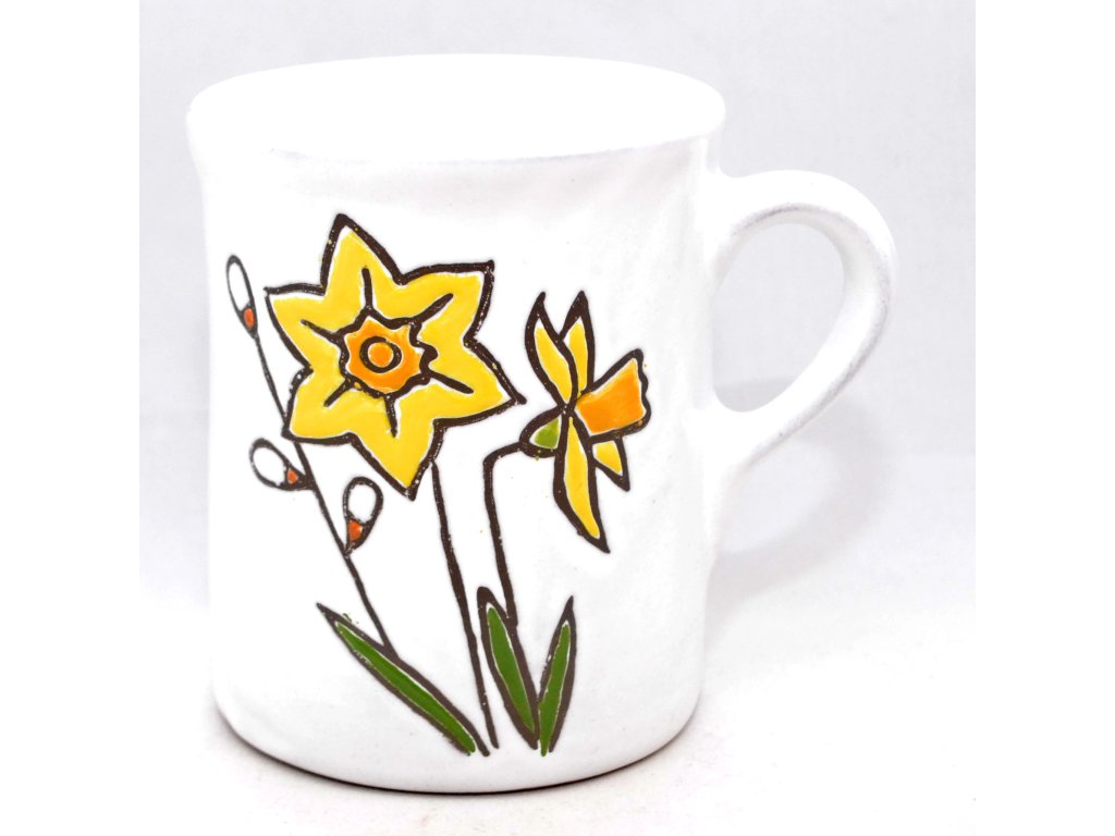 Každý náš hrnek je trošičku originál, protože se jedná o ruční výrobek. Než si do něj nalejete svou kávu, vezme jej do rukou mnoho lidí. Nejprve jej nalijeme do formy a necháme ho zaschnout tak, aby jeho stěny měly požadovanou šířku. Pak jej opatrně vyjmeme a obrousíme nedokonalosti. Po uschnutí čeká hrnek první výpal v keramické peci a poté přijde řada na glazuru a dekor. Obrázky na hrnky si buď předmalováváme voskem (to jsou ty obrázky s viditelnou konturou) nebo je malujeme barvítky přímo na glazuru (drobné vzorky kytiček nebo puntíků). A teprve potom čeká hrnek ostrý výpal v keramické peci.