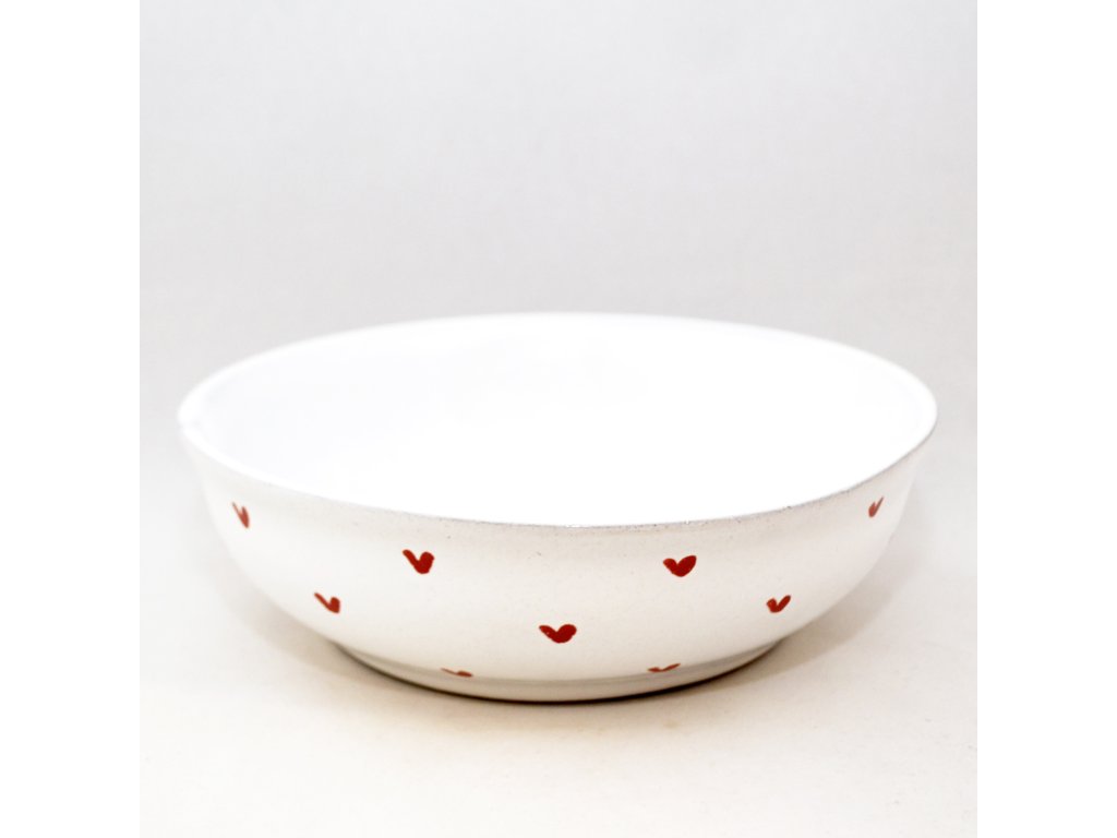 Každá naše miska je trošičku originál, protože se jedná o ruční výrobek. Než si do ní nasypete oříšky nebo si z ní vychutnáte svačinu, vezme ji do rukou mnoho lidí. Nejprve ji nalijeme do formy a necháme ji zaschnout tak, aby její stěny měly požadovanou šířku. Pak ji opatrně vyjmeme a obrousíme nedokonalosti. Po uschnutí čeká misku první výpal v keramické peci a poté přijde řada na glazuru a dekor. Obrázky na misku si buď předmalováváme voskem (to jsou ty obrázky s viditelnou konturou) nebo je malujeme barvítky přímo na glazuru (drobné vzorky kytiček nebo puntíků). A teprve potom ji čeká ostrý výpal v keramické peci.
