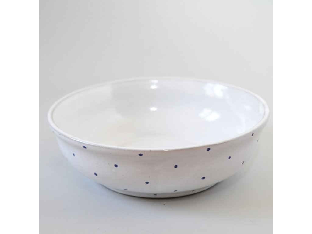 Každá naše miska je trošičku originál, protože se jedná o ruční výrobek. Než si do ní nasypete oříšky nebo si z ní vychutnáte svačinu, vezme ji do rukou mnoho lidí. Nejprve ji nalijeme do formy a necháme ji zaschnout tak, aby její stěny měly požadovanou šířku. Pak ji opatrně vyjmeme a obrousíme nedokonalosti. Po uschnutí čeká misku první výpal v keramické peci a poté přijde řada na glazuru a dekor. Obrázky na misku si buď předmalováváme voskem (to jsou ty obrázky s viditelnou konturou) nebo je malujeme barvítky přímo na glazuru (drobné vzorky kytiček nebo puntíků). A teprve potom ji čeká ostrý výpal v keramické peci.