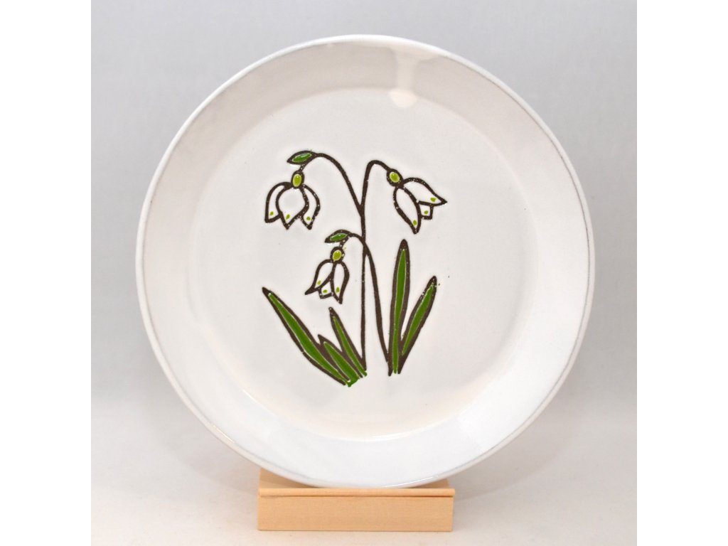 Každý náš talířek je trošičku originál, protože se jedná o ruční výrobek. Než si na něj postavíte svůj oblíbený hrnek nebo na něj své návštěvě nabídnete dezert, vezme jej do rukou mnoho lidí. Nejprve jej nalijeme do formy a necháme ho zaschnout tak, aby měl požadovanou šířku. Pak jej opatrně vyjmeme a obrousíme nedokonalosti. Po uschnutí čeká talířek první výpal v keramické peci a poté přijde řada na glazuru a dekor. Obrázky na talířky si buď předmalováváme voskem (to jsou ty obrázky s viditelnou konturou) nebo je malujeme barvítky přímo na glazuru (drobné vzorky kytiček nebo puntíků). A teprve potom ho čeká ostrý výpal v keramické peci.
