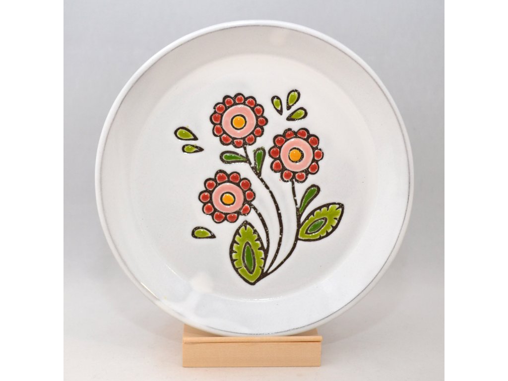 Každý náš talířek je trošičku originál, protože se jedná o ruční výrobek. Než si na něj postavíte svůj oblíbený hrnek nebo na něj své návštěvě nabídnete dezert, vezme jej do rukou mnoho lidí. Nejprve jej nalijeme do formy a necháme ho zaschnout tak, aby měl požadovanou šířku. Pak jej opatrně vyjmeme a obrousíme nedokonalosti. Po uschnutí čeká talířek první výpal v keramické peci a poté přijde řada na glazuru a dekor. Obrázky na talířky si buď předmalováváme voskem (to jsou ty obrázky s viditelnou konturou) nebo je malujeme barvítky přímo na glazuru (drobné vzorky kytiček nebo puntíků). A teprve potom ho čeká ostrý výpal v keramické peci.