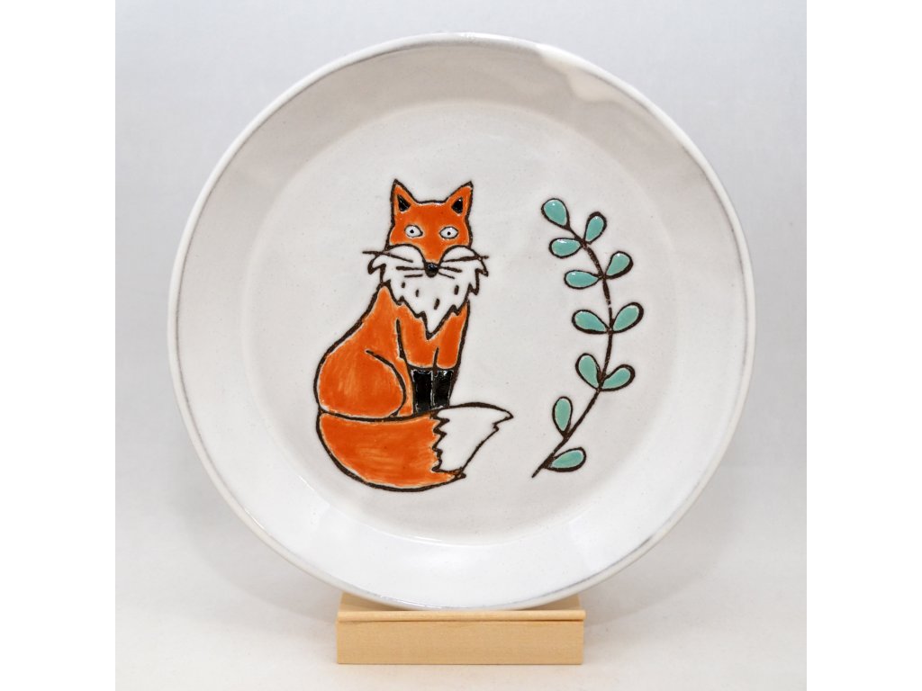 Každý náš talířek je trošičku originál, protože se jedná o ruční výrobek. Než si na něj postavíte svůj oblíbený hrnek nebo na něj své návštěvě nabídnete dezert, vezme jej do rukou mnoho lidí. Nejprve jej nalijeme do formy a necháme ho zaschnout tak, aby měl požadovanou šířku. Pak jej opatrně vyjmeme a obrousíme nedokonalosti. Po uschnutí čeká talířek první výpal v keramické peci a poté přijde řada na glazuru a dekor. Obrázky na talířky si buď předmalováváme voskem (to jsou ty obrázky s viditelnou konturou) nebo je malujeme barvítky přímo na glazuru (drobné vzorky kytiček nebo puntíků). A teprve potom ho čeká ostrý výpal v keramické peci.