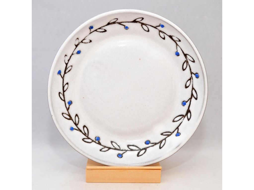 Každý náš talířek je trošičku originál, protože se jedná o ruční výrobek. Než si na něj postavíte svůj oblíbený hrnek nebo na něj své návštěvě nabídnete dezert, vezme jej do rukou mnoho lidí. Nejprve jej nalijeme do formy a necháme ho zaschnout tak, aby měl požadovanou šířku. Pak jej opatrně vyjmeme a obrousíme nedokonalosti. Po uschnutí čeká talířek první výpal v keramické peci a poté přijde řada na glazuru a dekor. Obrázky na talířky si buď předmalováváme voskem (to jsou ty obrázky s viditelnou konturou) nebo je malujeme barvítky přímo na glazuru (drobné vzorky kytiček nebo puntíků). A teprve potom ho čeká ostrý výpal v keramické peci.